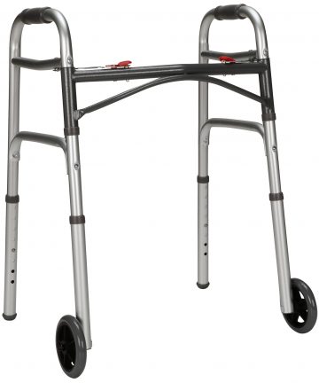 WALKER, FOLDING ALUM W/WHEELSADLT 350LB